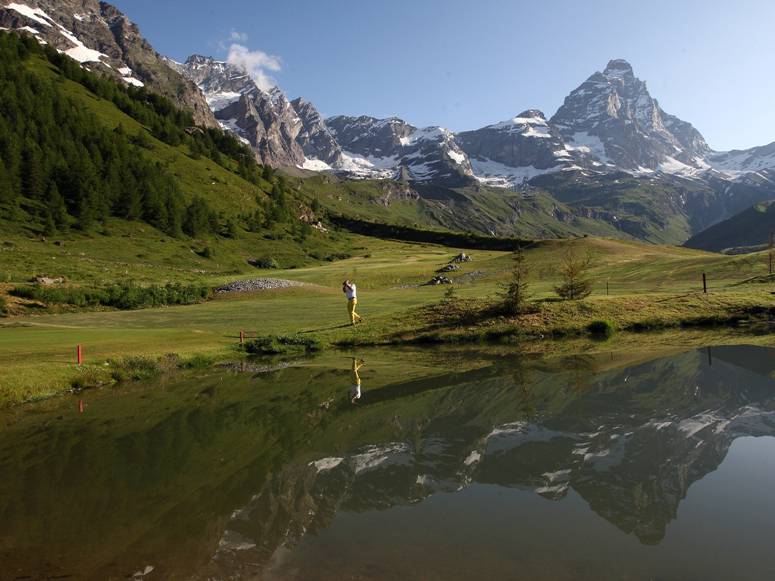 oggi può finalmente contare su 18 buche di elevata qualità tecnica e ambire a diventare uno dei campi più prestigiosi dell’intero arco alpino, offrendo al giocatore un panorama spettacolare al cospetto dell’immagine abbagliante del Cervino, che riempie gli occhi ed il cuore.