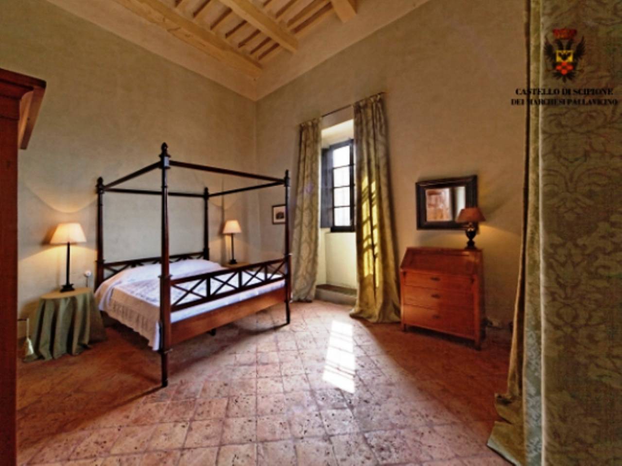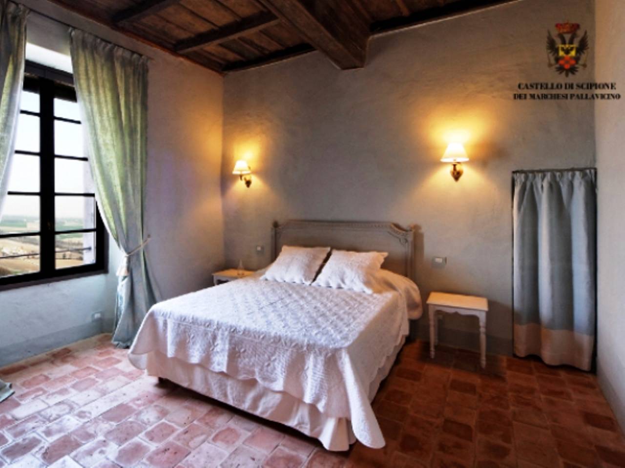 Immerso nel verde delle bellissime colline di grande valore paesaggistico situate tra Parma e Piacenza, nella quiete di un piccolo e suggestivo borgo medievale a pochi minuti da Salsomaggiore Terme, il Castello di Scipione dei Marchesi Pallavicino, costruito prima del 1025, è il più antico della Provincia. Il Castello, visitabile, conserva all'interno dei suoi saloni interamente arredati, sontuosi soffitti lignei a cassettoni con decorazioni del Quattrocento e Seicento e preziosi affreschi dello stesso periodo. Dalle finestre del Castello e dal loggiato Seicentesco, unico nella zona, si godono viste panoramiche d'eccezione sul paesaggio collinare e sul borgo. All'interno del Castello sono a disposizione degli ospiti due suites di charme con ingressi indipendenti, nella torre trecentesca e nell'ala Est, vicino all'antico ingresso, per trascorrere un soggiorno in un contesto esclusivo, in un'atmosfera romantica e ricca di storia, immersi nella natura. Gli interni sono arredati con cura, stoffe ricercate e mobili d'epoca. I letti spaziosi, anche a baldacchino, hanno strutture in legno per regalare sogni tranquilli. Mura millenarie dipinte a calce con feritoie, soffiti lignei del Trecento e Seicento, pavimenti in cotto antico, viste panoramiche imperdibili sulle colline e sulla pianura. Le suites del Castello sono dotate di mura spesse che durante l'estate isolano dal calore esterno e durante l'inverno trattengono il calore del riscaldamento. All'interno del borgo, di fianco al Castello, un ristorante a conduzione famigliare propone gli ottimi piatti tipici del territorio. Nelle vicinanze si raggiungono altri borghi medievali, castelli, antiche abbazie e città d'arte con la possibilità di programmare percorsi enogastronomici. Numerose le attività che si possono organizzare nelle vicinanze, dal golf, nel vicinissimo campo di Salsomaggiore Terme, alle passeggiate nella campagna da fare a piedi o a cavallo e alle cure termali nella Spa delle Terme Berzieri. Il Castello, su richiesta, offre anche vari spazi di grande suggestione per l'organizzazione di eventi privati e aziendali.